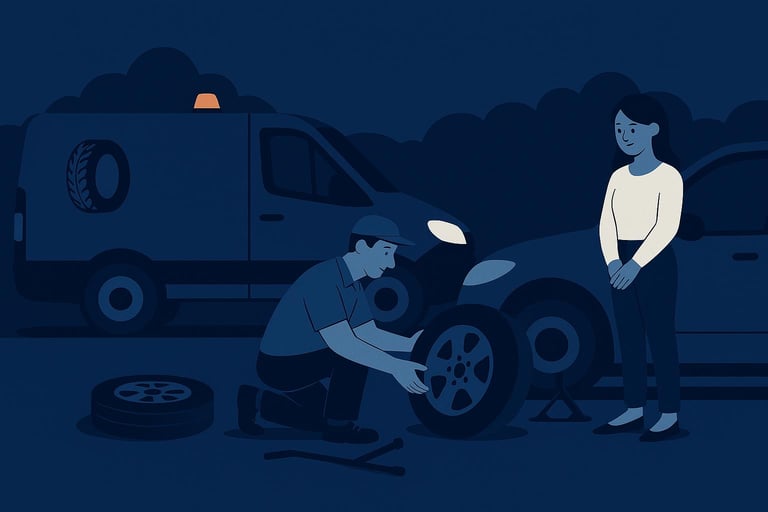 24/7 mobile tyre repair service reaching you in 30–60 minutes across London and the UK.